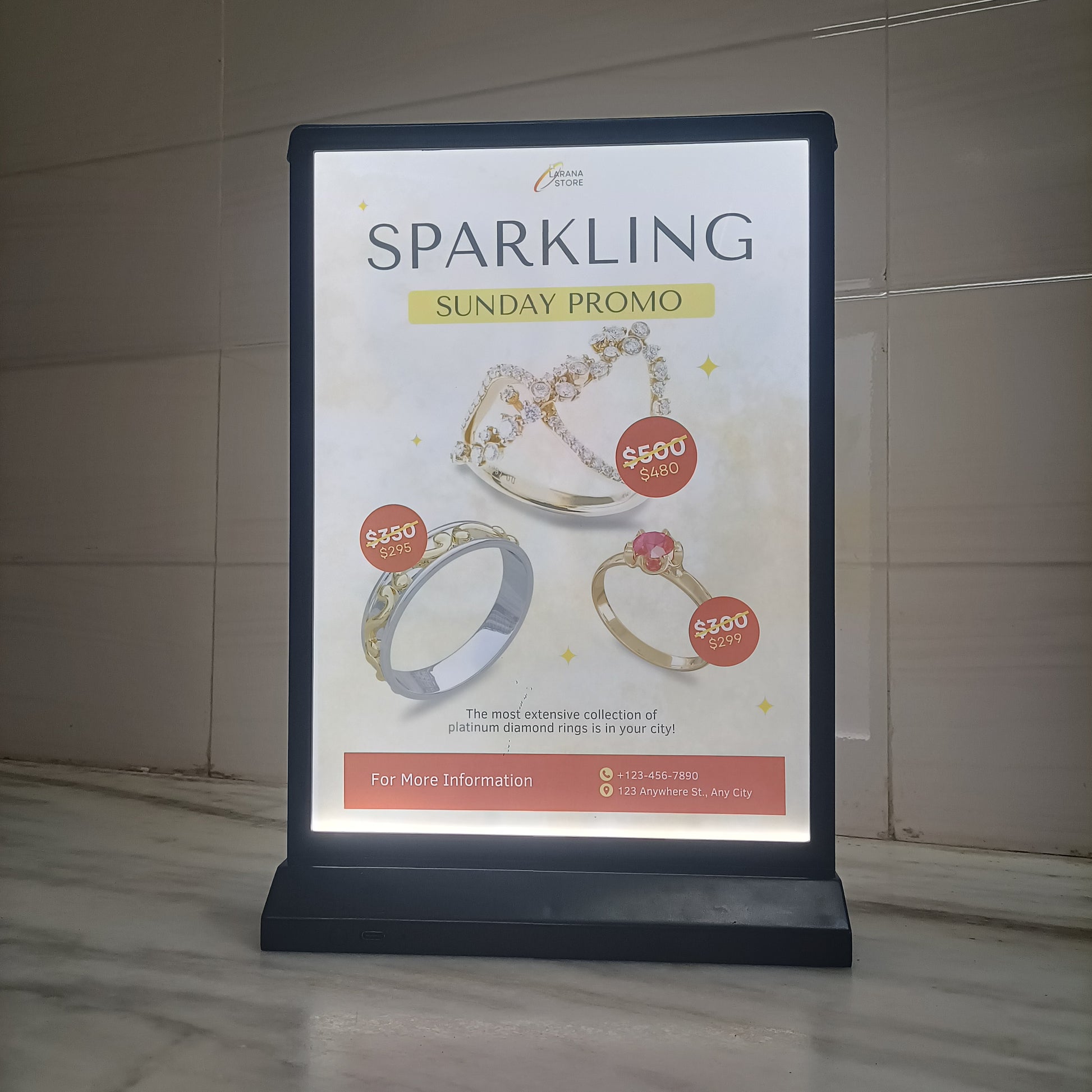 With the Boldest LED Display Standee, your promotions won’t go unnoticed—they’ll shine bright, every single time.