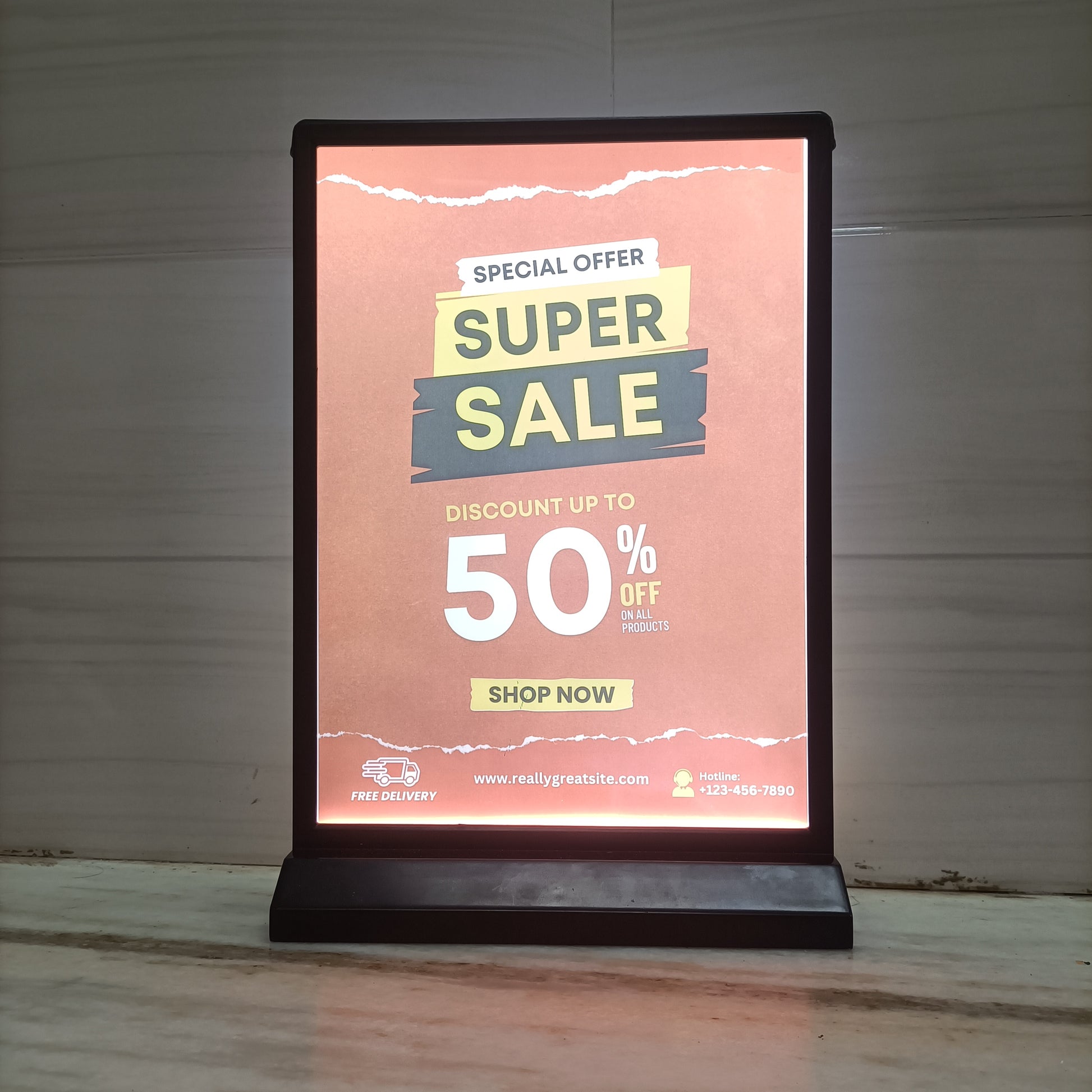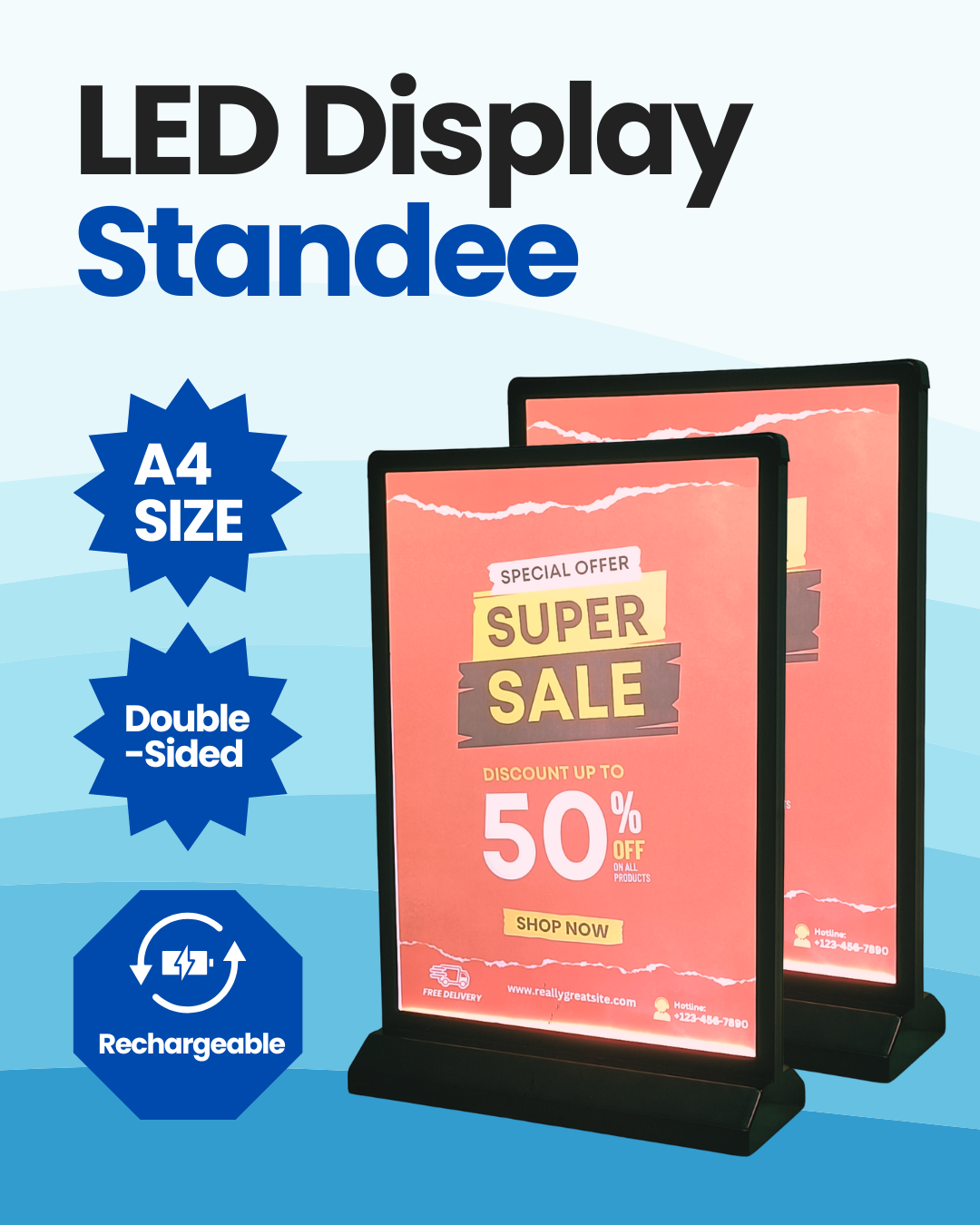 LED Display Standee – A4 | Double-Sided | Rechargeable